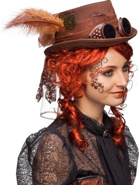 Zylinder Steampunk mit Brille Artikelnummer 23679.02 Kategorie Hüte Zielgruppe Damen Thema Steampunk Anlass Fasching Karneval Farbe braun schwarz Preis 17.99 Weitere Infos mit Schleife