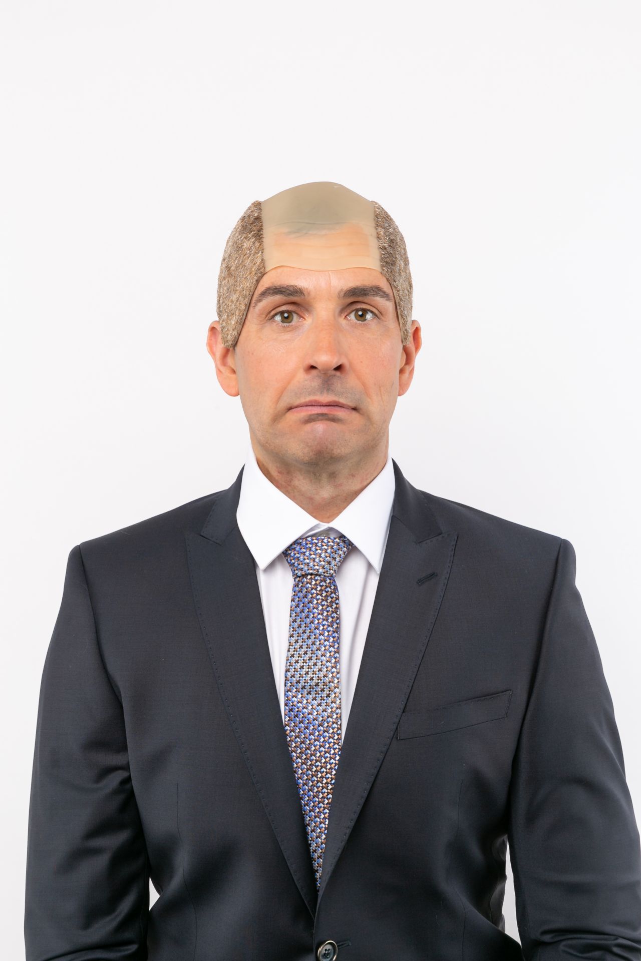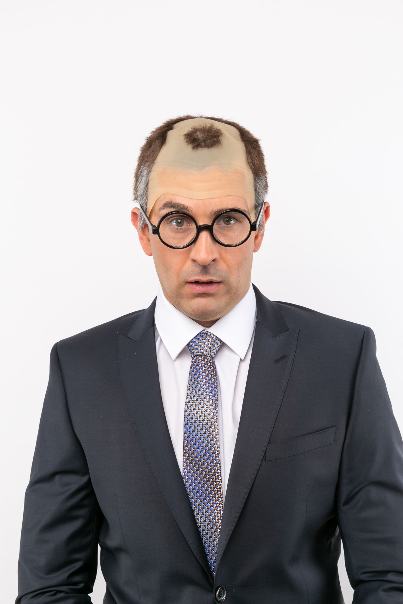 Halbglatze mit mittigem Haarteil